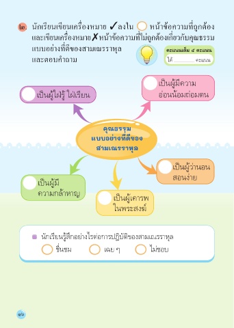 และเขียนเคร่องหมาย ✗ หน้าข้อความท่ไม่ถูกต้องเก่ยวกับคุณธรรม