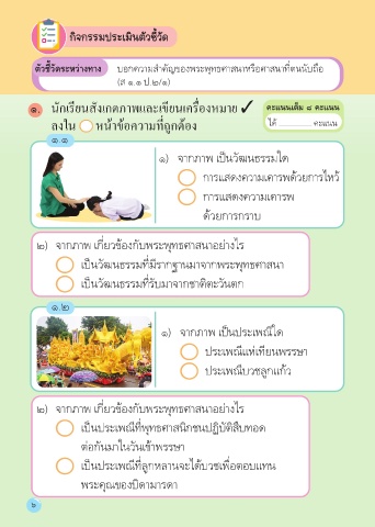 ตัวชี้วัดระหว่างทาง บอกความสำาคัญของพระพุทธศาสนาหรือศาสนาที่ตนนับถือ