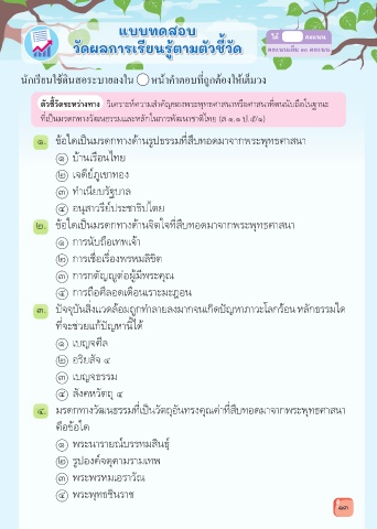 ตัวชี้วัดระหว่างทาง วิเคราะห์ความสำาคัญของพระพุทธศาสนาหรือศาสนาที่ตนนับถือในฐานะ