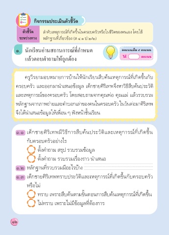 ตัวชี้วัด ลำาดับเหตุการณ์ที่เกิดขึ้นในครอบครัวหรือในชีวิตของตนเอง โดยใช้