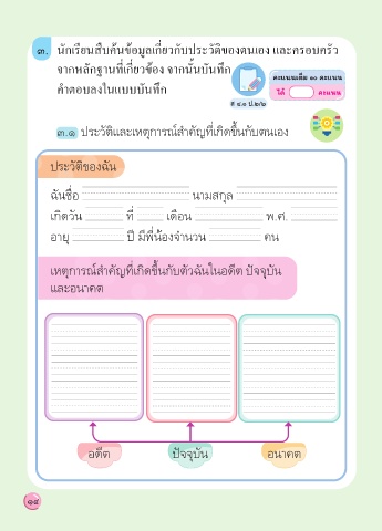 ๓. นักเรียนสืบค้นข้อมูลเกี่ยวกับประวัติของตนเอง และครอบครัว