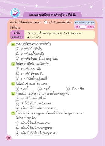 ตัวชี้วัด ใช้คำาระบุเวลาที่แสดงเหตุการณ์ในอดีต ปัจจุบัน และอนาคต