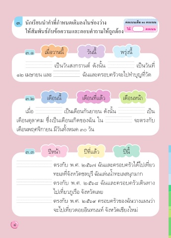 ๓. นักเรียนนำาคำาที่กำาหนดเติมลงในช่องว่าง คะแนนเต็ม ๑๐ คะแนน