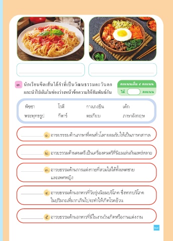 และนำาไปเติมในช่องว่างหน้าข้อความให้สัมพันธ์กัน ได้ คะแนน