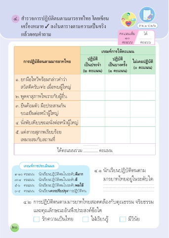 ๔.๒ การปฏิบัติตนตามมารยาทไทยสอดคล้องกับคุณธรรม จริยธรรม
