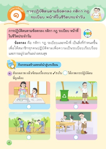 การปฏิบัติตนตามข้อตกลง กติกา กฎ ระเบียบ หน้าที่