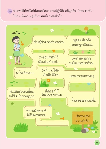 ๒. ช่วยพาฟ้าใสเดินไปตามเส้นทางการปฏิบัติตนที่ถูกต้อง โดยลากเส้น