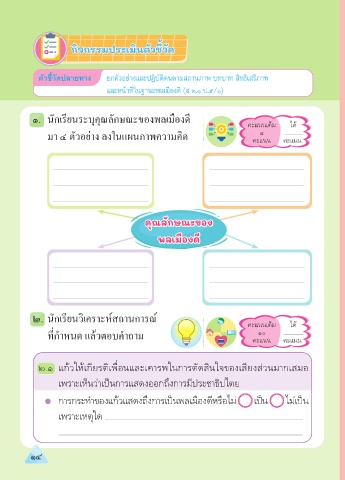 ๑. นักเรียนระบุคุณลักษณะของพลเมืองดี คะแนนเต็ม ได้