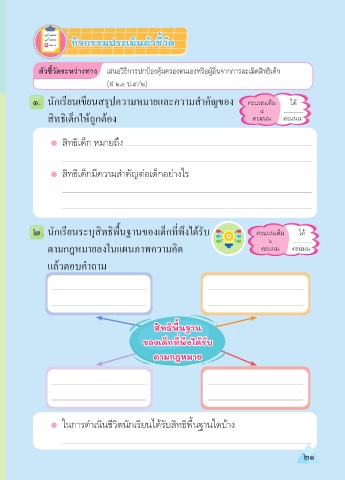 ๒. นักเรียนระบุสิทธิพื้นฐานของเด็กที่พึงได้รับ คะแนนเต็ม ได้
