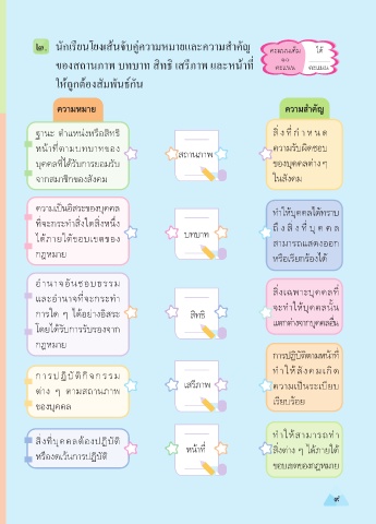 ของสถานภาพ บทบาท สิทธิ เสรีภาพ และหน้าที่ คะแนน คะแนน