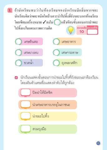 โดยเขียนเครื่องหมาย ✓ลงใน แล้วเขียนข้นตอนการนาขยะ