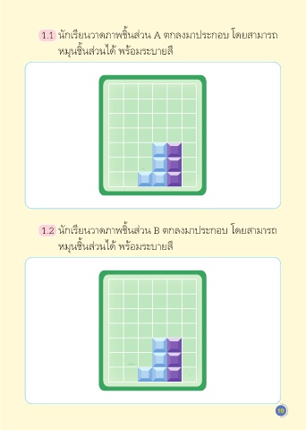 1.1 นักเรียนว�ดภ�พชิ้นส่วน A ตกลงม�ประกอบ โดยส�ม�รถ หมุนชิ้นส่วนได้ พร้อมระบ�ยสี 1.2 นักเรียนว�ดภ�พชิ้นส่วน B ตกลงม�ประกอบ โดยส�ม�รถ หมุนชิ้นส่วนได้ พร้อมระบ�ยสี 19