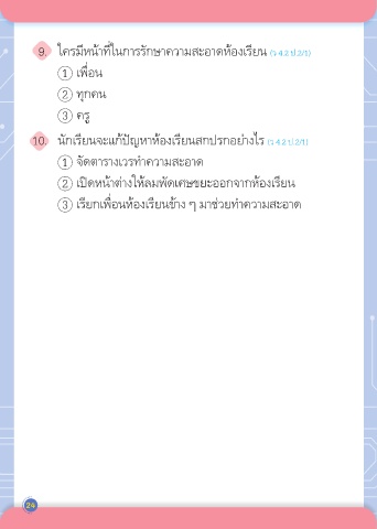 9. ใครมีหน้�ที่ในก�รรักษ�คว�มสะอ�ดห้องเรียน (ว 4.2 ป.2/1)