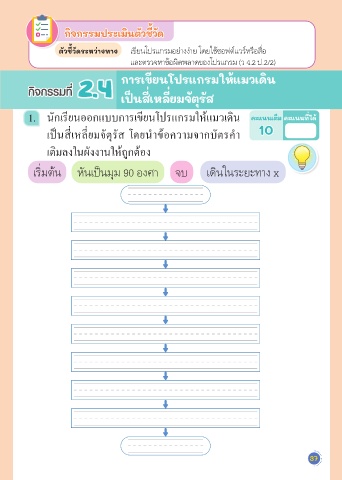 1. นักเรียนออกแบบการเขียนโปรแกรมให้แมวเดิน คะแนนเต็ม คะแนนที ได้