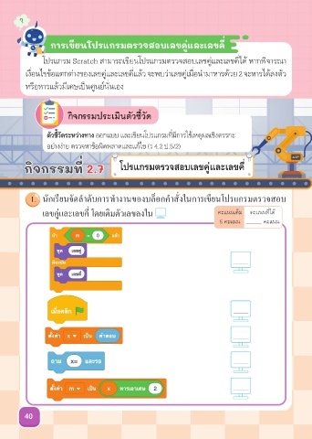 โปรแกรม Scratch สามารถเขียนโปรแกรมตรวจสอบเลขคู่และเลขคี่ได้ หากพิจารณา