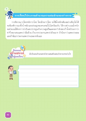 สร้างสรรค์ ์ นักเรียนจะคำานวณหาค่าความสมส่วนของร่างกายเราอย่างไร