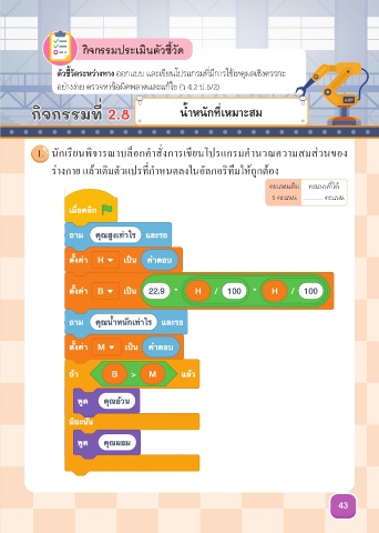 1. นักเรียนพิจารณาบล็อกคาส่งการเขียนโปรแกรมคานวณความสมส่วนของ