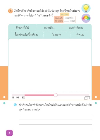 นักเรียนเลือกทากิจกรรมใดเป็นลำาดับแรกและทากิจกรรมใดเป็นลำาดับ