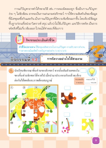 1. นักเรียนพิจารณาชิ้นส่วนของจิกซอว์ จากนั้นเติมตัวเลขลงใน