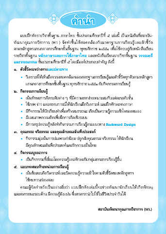 ตามหลักสูตรแกนกลางการศึกษาข้นพ้นฐาน พุทธศักราช ๒๕๕๑ เพ่อใช้ควบคู่กับหนังสือเรียน
