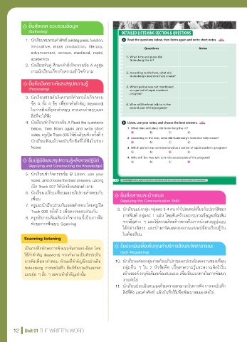 notes, and choose the best answers. และคร ู 12 Listening II: Listen again for specific information and take notes to help you answer the questions.