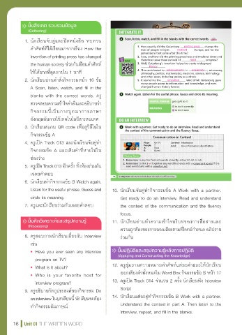 2. นักเรียนอ่านคาส่งกิจกรรมหน้า 16 ข้อ 5. It seems like the innovative mind of Mr. Gutenberg gave