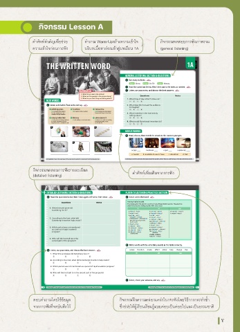 คำาศัพท์สำาคัญเพื่อช่วย คำาถาม Warm-Upสร้างความเข้าใจ กิจกรรมทดสอบการฟังภาพรวม