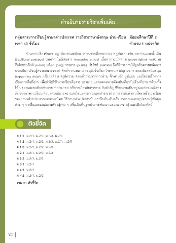 กลุ่มสาระการเรียนรู้ภาษาต่างประเทศ รายวิชาภาษาอังกฤษ อ่าน-เขียน มัธยมศึกษาปีที่ 2