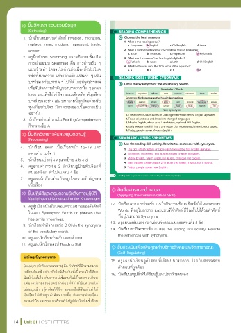 of the vocabulary words. 14. นักเรียนทำากิจกรรมข้อ C Use the reading skill activity. Rewrite