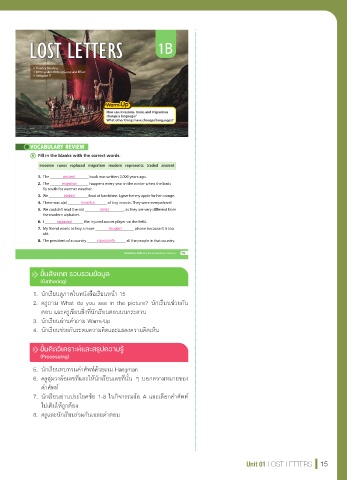 7. นักเรียนอ่านประโยคข้อ 1-8 ในกิจกรรมข้อ A และเลือกคาศัพท ์