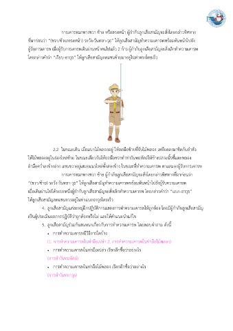 2.2 ในขณะเดิน เมื่อแบกไม้พลองอยู่ ให้ลดมือซ้ายที่จับไม้พลอง เหยียดลงมาชิดกับลำตัว