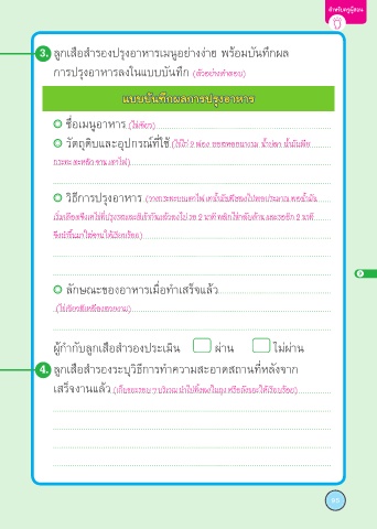 การปรุงอาหารลงในแบบบันทึก (ตัวอย่�งคำ�ตอบ)