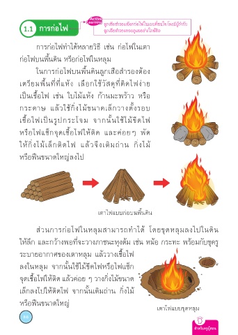 1.1 การก่อไฟ ลูกเสือสำ�รองเลือกก่อไฟในแบบที่สนใจ โดยมีผู้กำ�กับ