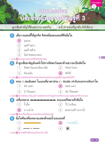 1. เฉลย 1 เพราะมุมบนของแผนที่คือทิศเหนือเสมอ