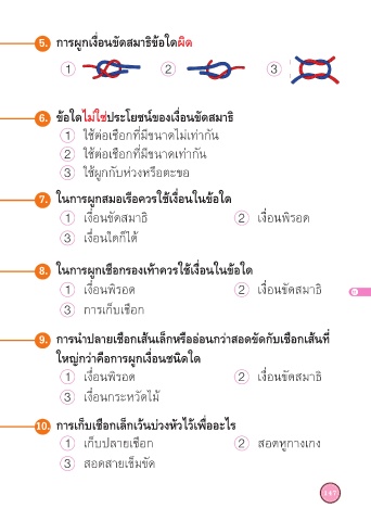 8. ในการผูกเชือกรองเท้าควรใช้เงื่อนในข้อใด 9