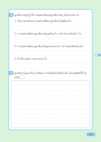2. ลูกเสือสามัญปฏิบัติการแสดงรหัสของลูกเสือสามัญ แล้วตอบคำาถาม