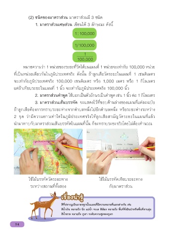 3. มาตราส่วนเสนบรรทด จะแสดงไว้ท่ขอบด้านล่างของแผนท่แต่ละฉบับ