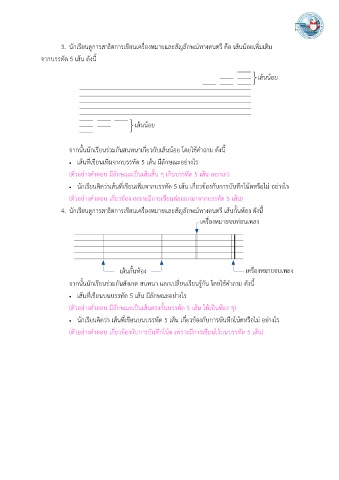 3. นักเรียนดูการสาธิตการเขียนเครื่องหมายและสัญลักษณ์ทางดนตรี คือ เส้นน้อยเพิ่มเติม