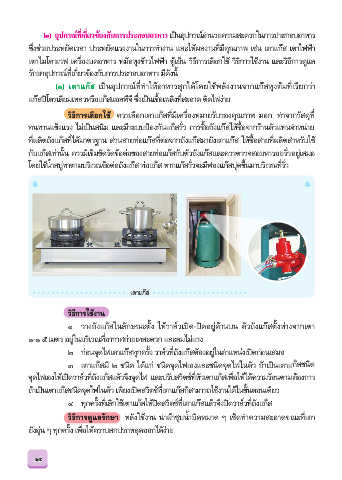 (๑) เตาแก๊ส เป็นอุปกรณ์ท่ทาให้อาหารสุกได้โดยใช้พลังงานจากแก๊สหุงต้มท่เรียกว่า