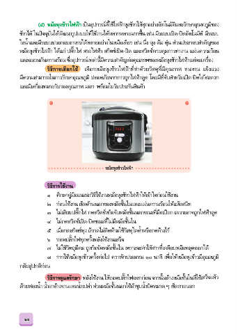 (๕) หมอหุงข้าวไฟฟ้า เป็นอุปกรณ์ท่ใช้ไฟฟ้าหุงข้าวให้สุกอย่างอัตโนมัติและรักษาอุณหภูมิของ