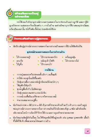 ๑. นักเรียนจับคู่อุปกรณ์อำานวยความสะดวกในการทำางานบ้านและการใช้งานให้สัมพันธ์กัน
