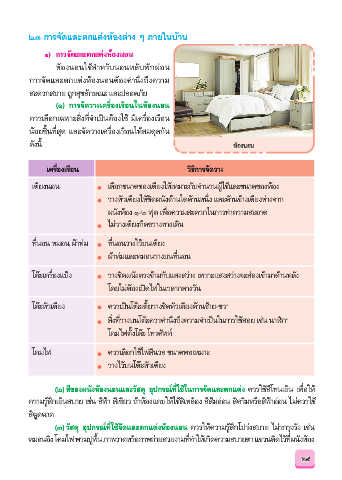 (๓) วัสด อุปกรณ์ท่ใช้จัดและตกแต่งห้องนอน ควรให้ความร้สึกโปร่งสบาย ไม่รกรุงรัง เช่น