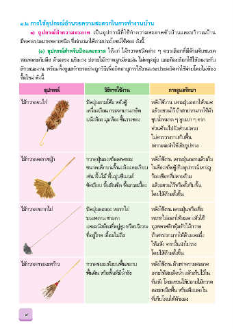 (๑) อุปกรณ์สาหรับปัดและกวาด ได้แก่ ไม้กวาดชนิดต่าง ๆ ควรเลือกท่มีด้ามจับขนาด