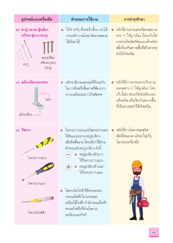 อุปกรณ์และเครื่องมือ ลักษณะก�รใช้ง�น ก�รบำ�รุงรักษ�