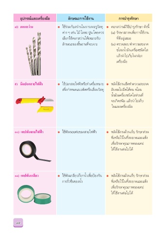 อุปกรณ์และเครื่องมือ ลักษณะก�รใช้ง�น ก�รบำ�รุงรักษ�