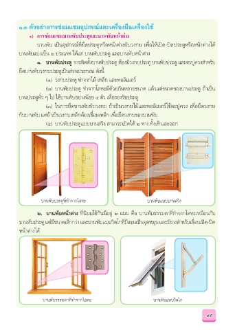 ๒. บ�นพับหน�ต�ง ท่นิยมใช้กันมีอยู่ ๒ แบบ คือ บานพับธรรมดาท่ทาจากโลหะเหมือนกับ