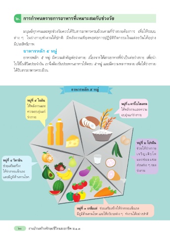 ไปใช้ในชีวิตประจำาวัน เราจึงต้องรับประทานอาหารให้ครบ ๕ หมู่ และมีความหลากหลาย เพื่อให้ร่างกาย