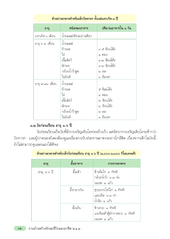 ตัวอย่างอาหารสำาหรับเด็กวัยก่อนเรียน อายุ ๑–๖ ปี (๑,๐๐๐–๑,๓๐๐ กิโลแคลอรี)