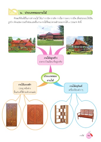 รูปร่าง ดัดแปลง รวมถึงซ่อมแซมชิ้นงาน งานไม้จึงแบ่งตามลักษณะงานได้ ๓ ประเภท ดังนี้