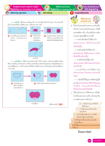 ๑. แทงเข็มข้นและแทงเข็มลงด้าน ๒. ทำาซ้าเช่นเดียว ๓. แทงเข็มลงด้านหลัง กลับด้านหลัง รวบยอด โดยครูใช้คำาถาม ดังนี้